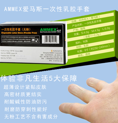 AMMEX愛(ài)馬斯一次性乳膠手套 無(wú)粉大號(hào) TLFC46100