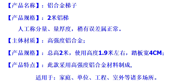 - 商品名稱:鋁合金人字梯 2M