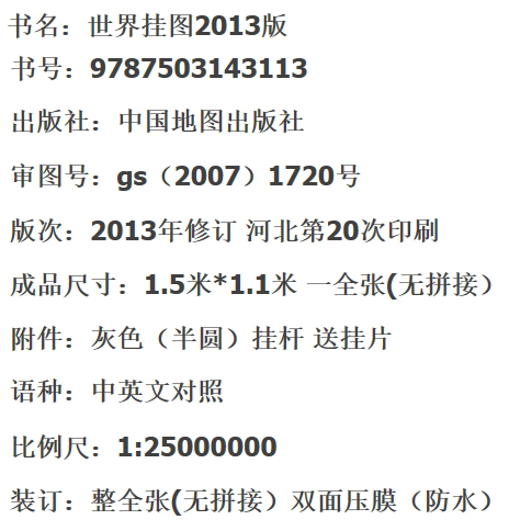 - 商品名稱:世界地圖防水掛圖貼圖(1.5*1.1m)