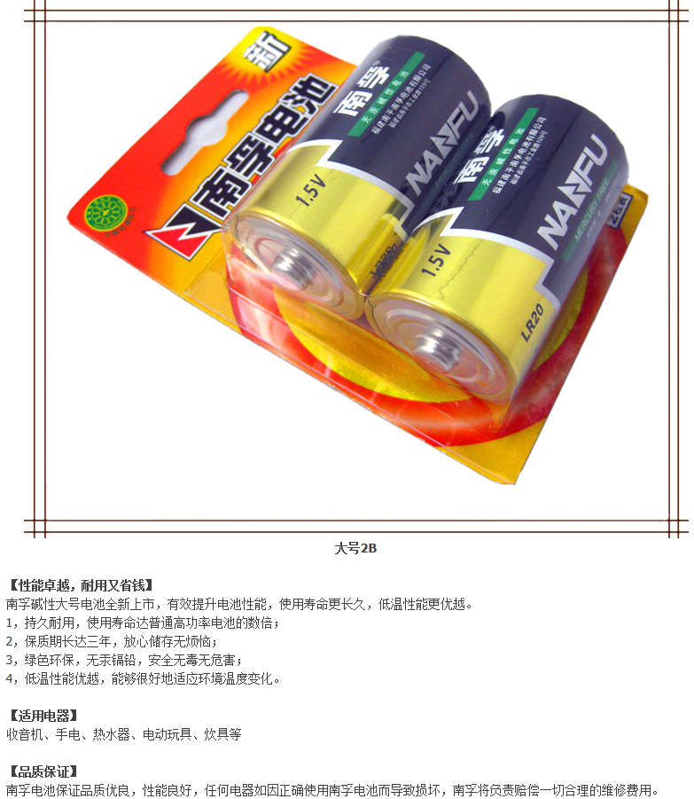 • 商品名稱:南孚堿性電池(2號,2節(jié)/卡,12卡/盒)按卡售