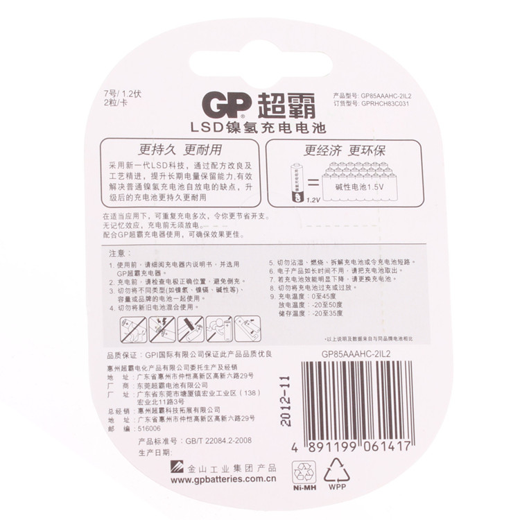 超霸鎳氫充電電池(7號(hào),850毫安/節(jié),2節(jié)/卡)按卡售
