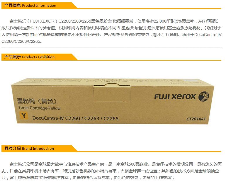 - 商品名稱:原裝富士施樂(FUJI XEROX)2260復印機墨粉筒 黃色(Toner Cartidge-Yellow)