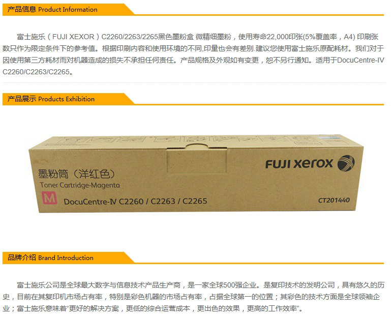 - 商品名稱:原裝富士施樂(FUJI XEROX)2260復(fù)印機墨粉筒 紅色(Toner Cartidge-Magenta)