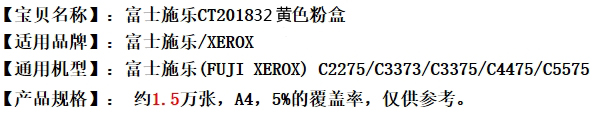 - 商品名稱:原裝富士施樂(FUJI XEROX)2270/3373復(fù)印機(jī)墨粉筒 黃色(Toner Cartidge-Yellow)