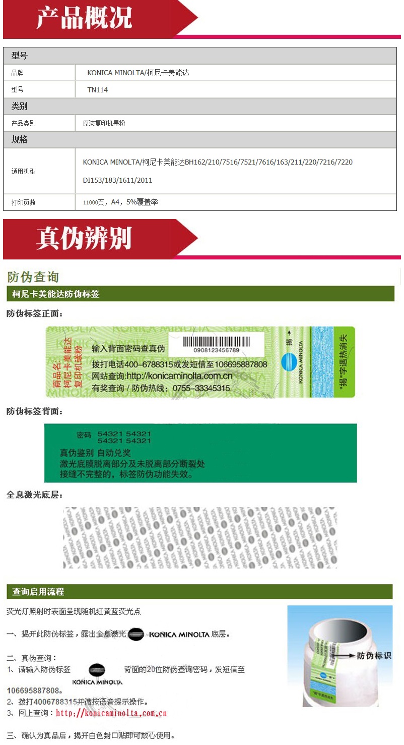 - 商品名稱:原裝柯尼卡美能達(KONICA MINOLTA)TN114復印機墨粉