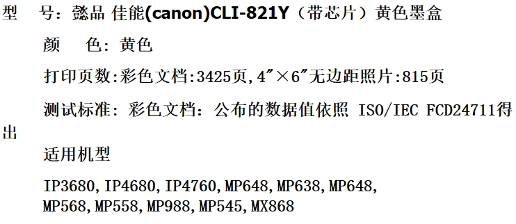 - 商品名稱(chēng):懿品佳能 CLI-821Y 黃色墨盒