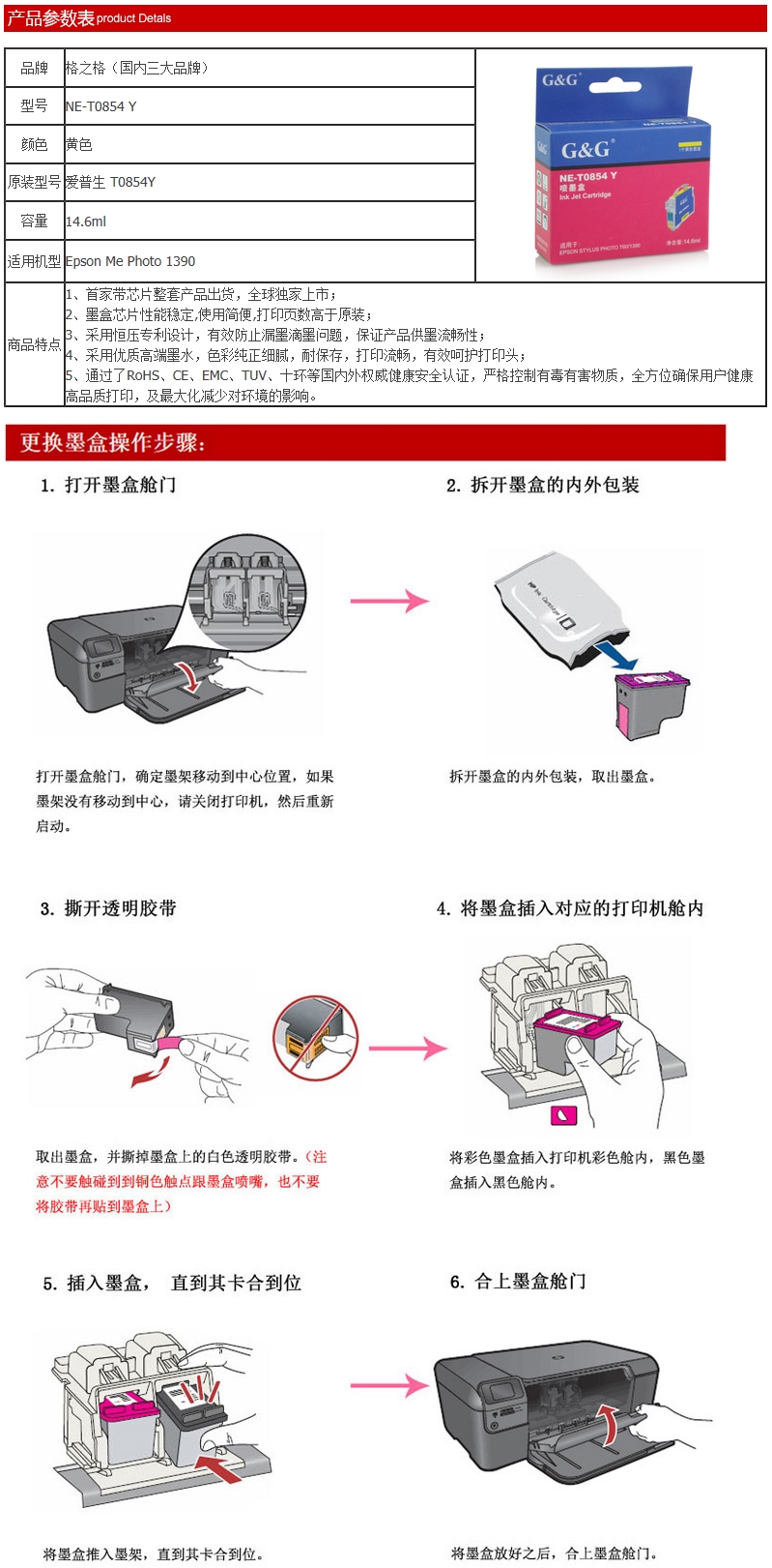 - 商品名稱:格之格愛普生 T0854 黃色墨盒(適用1390/R330)