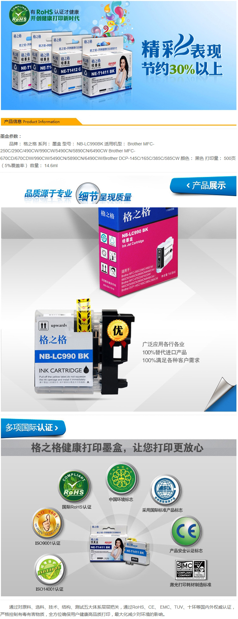 - 商品名稱:格之格兄弟 LC990BK 黑色墨盒