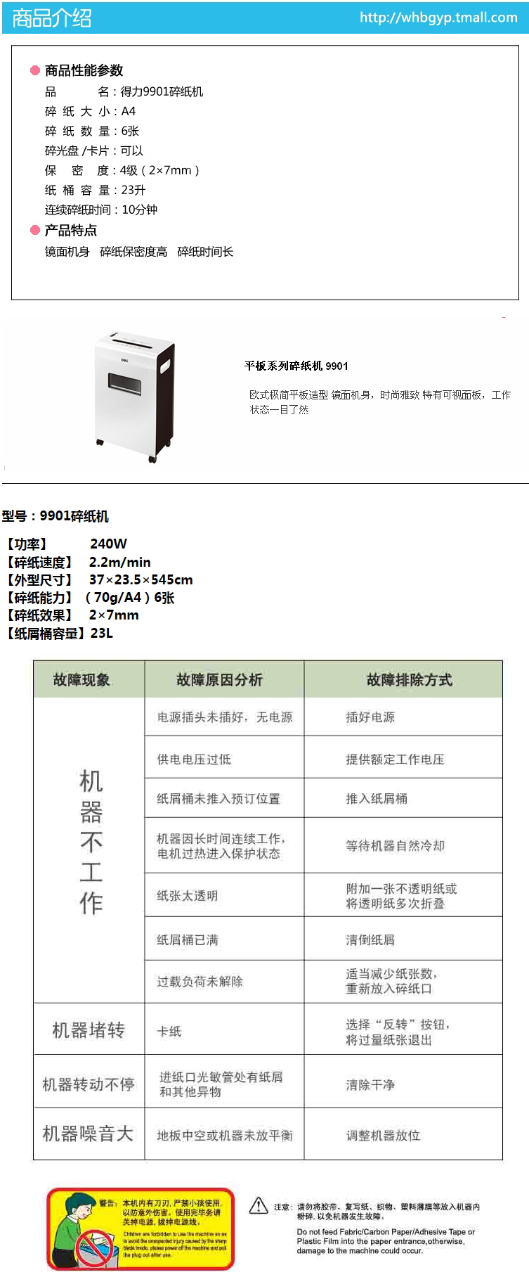 • 商品名稱:得力(Deli)9901 平板系列碎紙機(23L紙桶容量、集體辦公型單次碎紙能力6張S4級保密靜音設(shè)計)