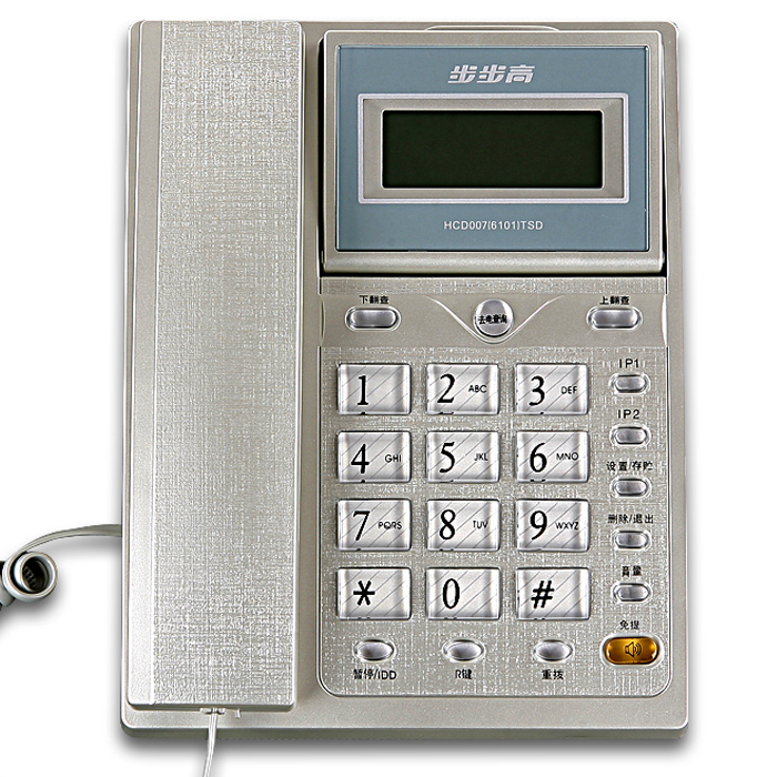 • 商品名稱(chēng):步步高 HCD007(6101)TSD 有繩電話機(jī)/座機(jī)(時(shí)尚翻蓋、磨砂材質(zhì)、夜光按鍵、來(lái)電顯示、雙接口)