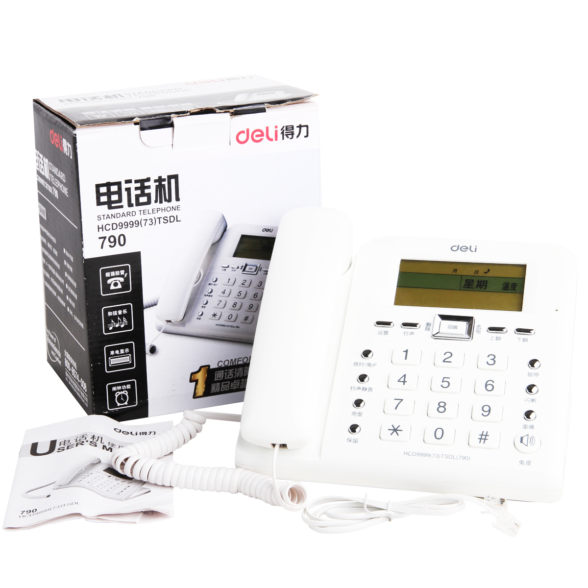 • 商品名稱:得力(Deli)790 來(lái)電顯示辦公家用電話機(jī)/固定電話/座機(jī) 30度創(chuàng)意時(shí)尚大屏幕