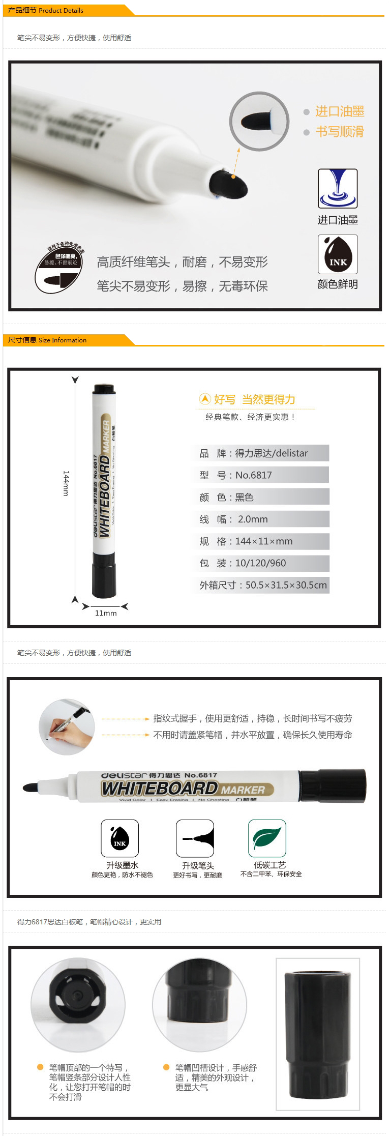 • 商品名稱:得力(deli)思達(dá)白板筆 6817(藍(lán)色,10支/盒;120支/包)按盒售