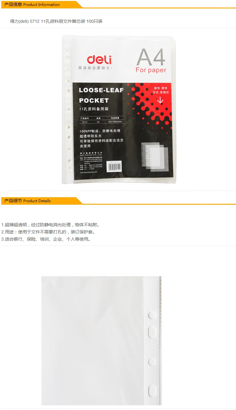 • 商品名稱:得力(deli)十一孔保護膜 5712(100個/包)按包售