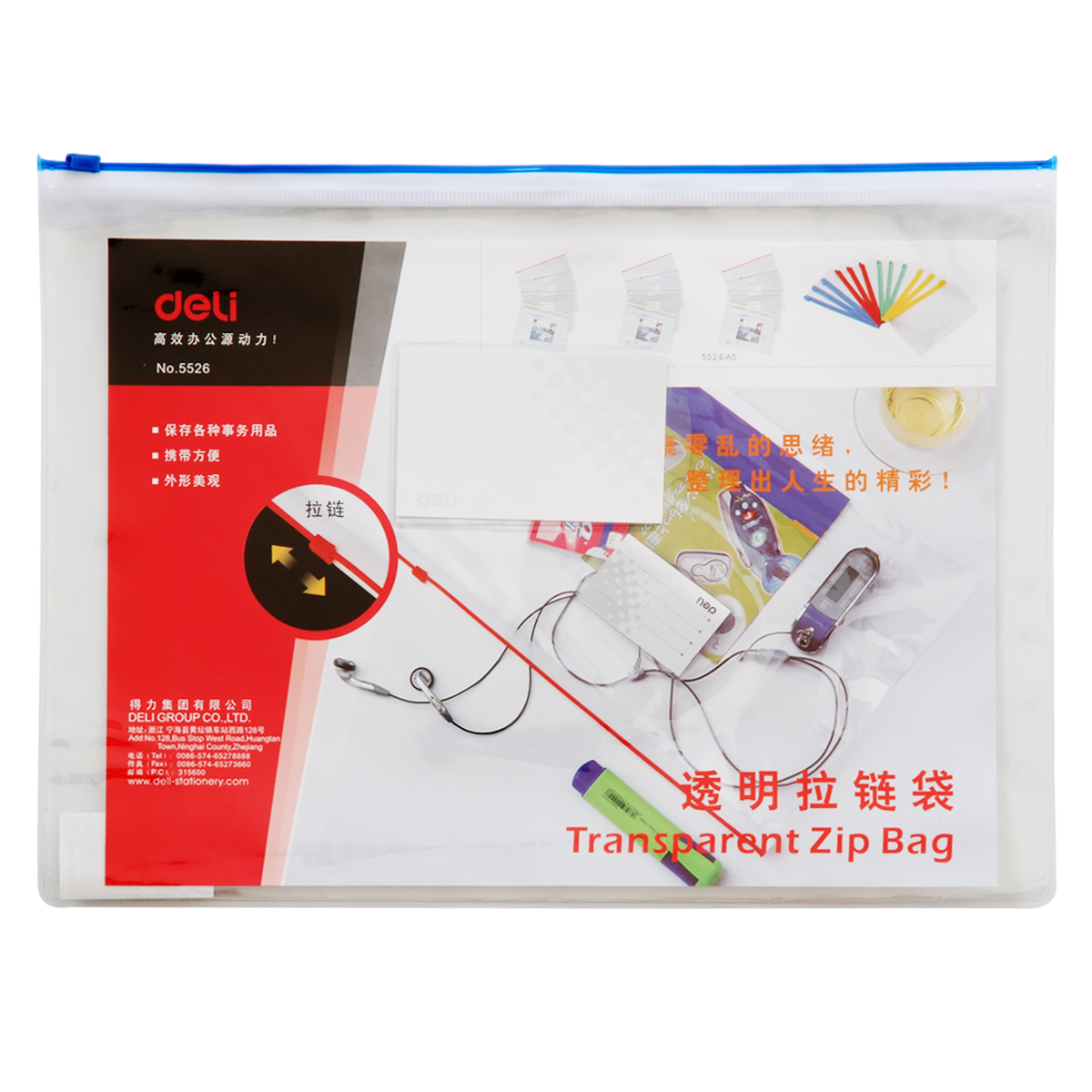 • 商品名稱:得力(deli)透明PVC拉鏈袋 5526(混色,A4,12個/包)