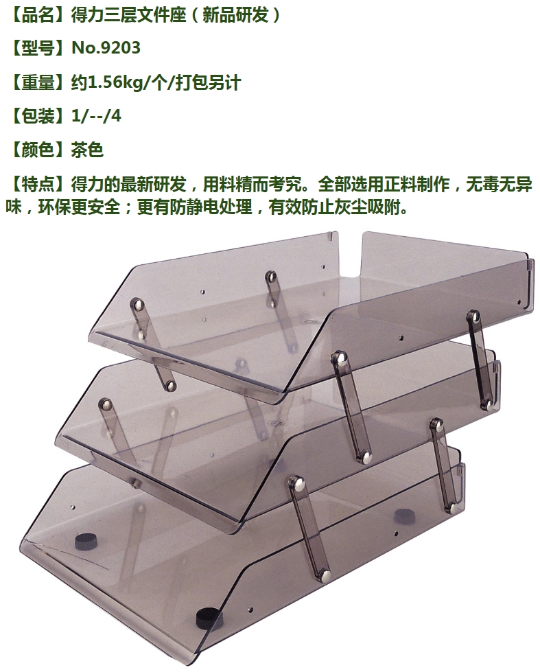 - 商品名稱:得力(deli)9203 透明三層活動(dòng)文件盤/座(4只/箱)
