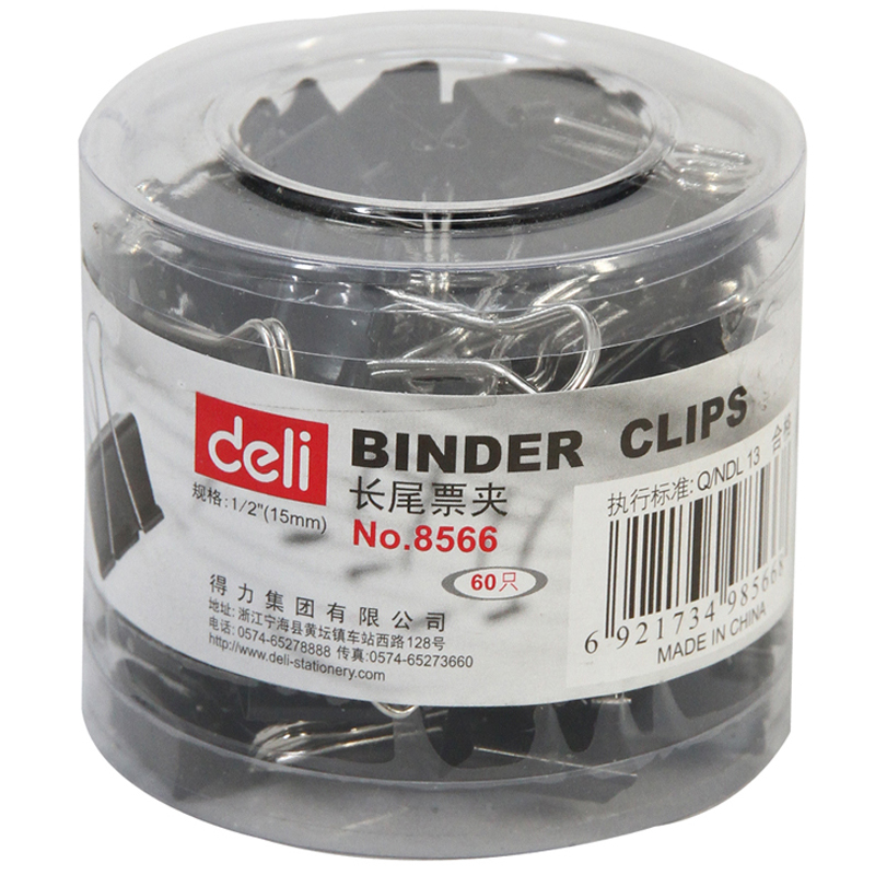- 商品名稱:得力(deli)筒裝長尾票夾黑色 15mm 6# 8566(60只/筒,60筒/件)