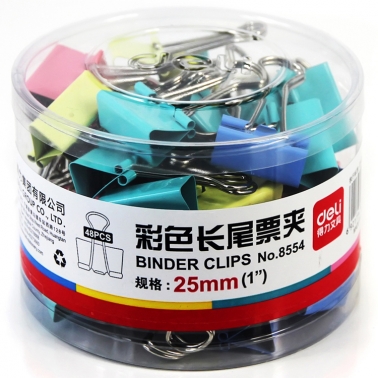 - 商品名稱:嚴(yán)采/得力(deli)筒裝長(zhǎng)尾票夾彩色 25mm 4# 8554(48只/筒,48筒/件)