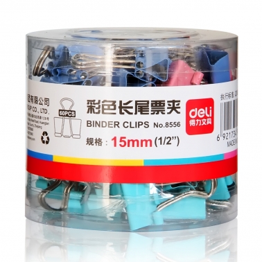 - 商品名稱:嚴(yán)采/得力(deli)筒裝長尾票夾彩色 15mm 6# 8556(60只/筒,60筒/件)