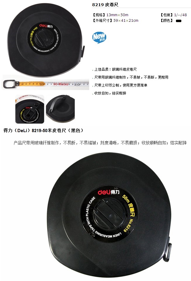 • 商品名稱:得力(deli)玻璃纖維皮卷尺 13mm*50m 8219