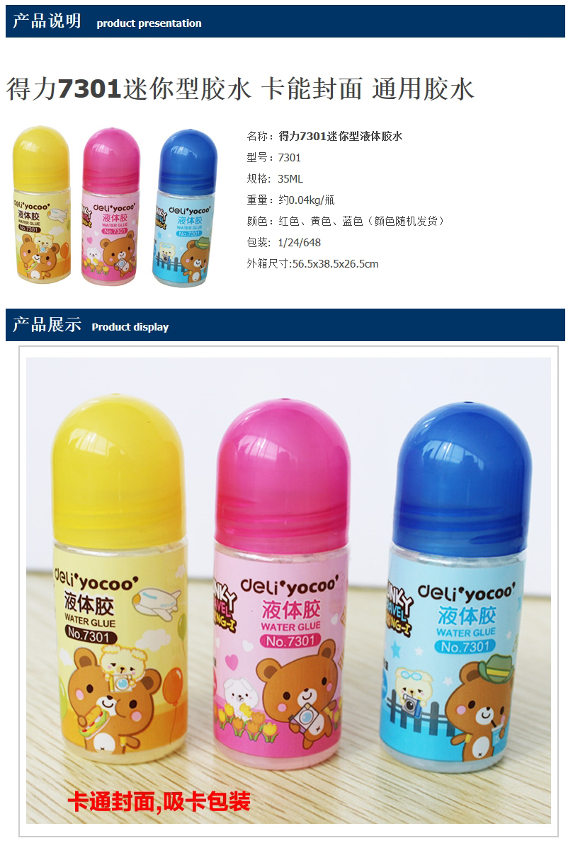 - 商品名稱:得力(deli)液體膠水 35ml 7301(24瓶/盒)