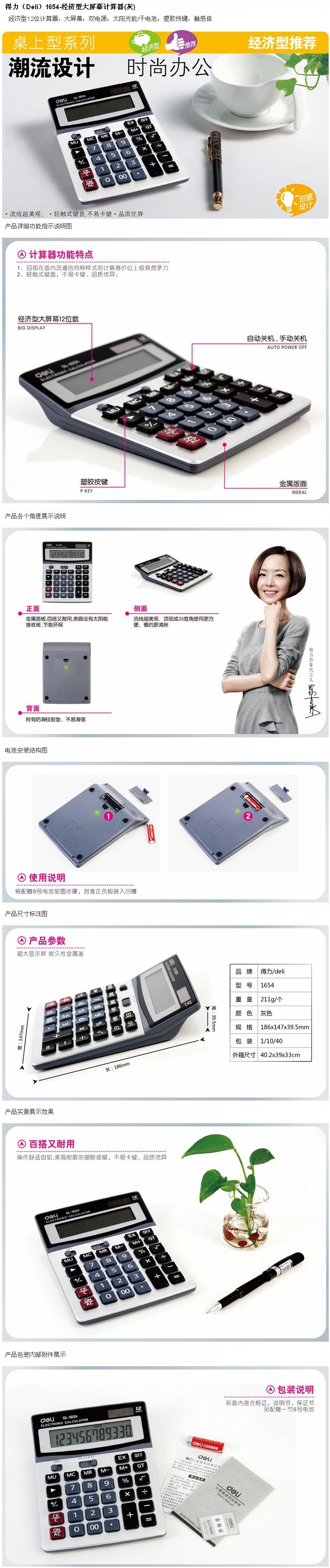 - 商品名稱:得力(deli)經(jīng)濟(jì)型計(jì)算器 1654(10只/盒)