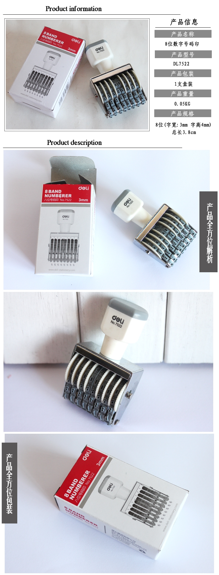 - 商品名稱:得力(deli)八位號碼印 7522(12個/盒)