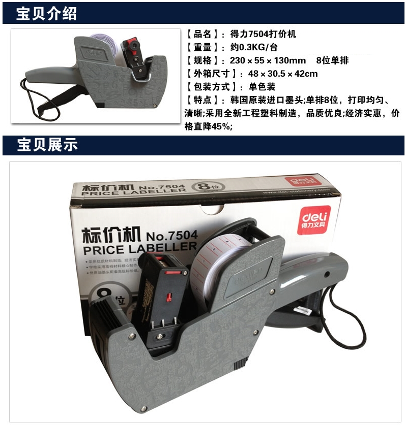 - 商品名稱:得力(deli)經(jīng)濟(jì)型標(biāo)價(jià)機(jī) 7504