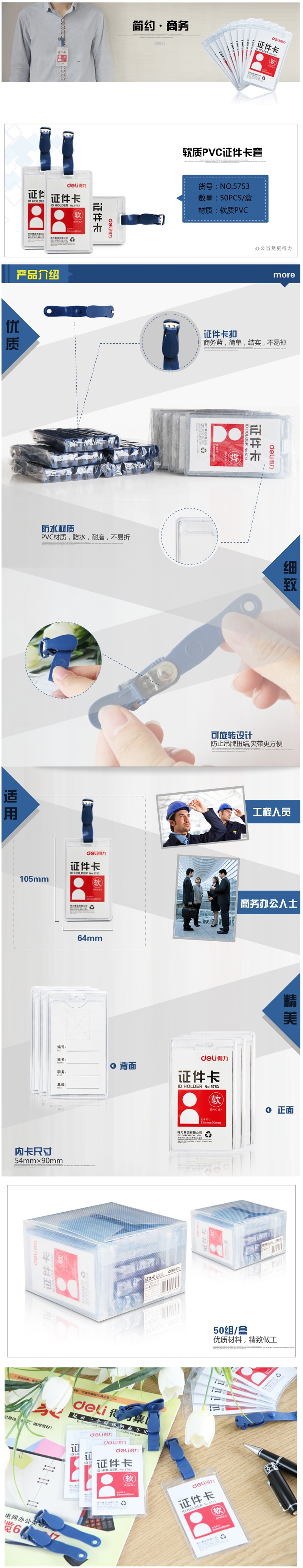 • 商品名稱:得力(deli)透明證件卡(豎) 5753(10個(gè)/包;5包/盒)按包售