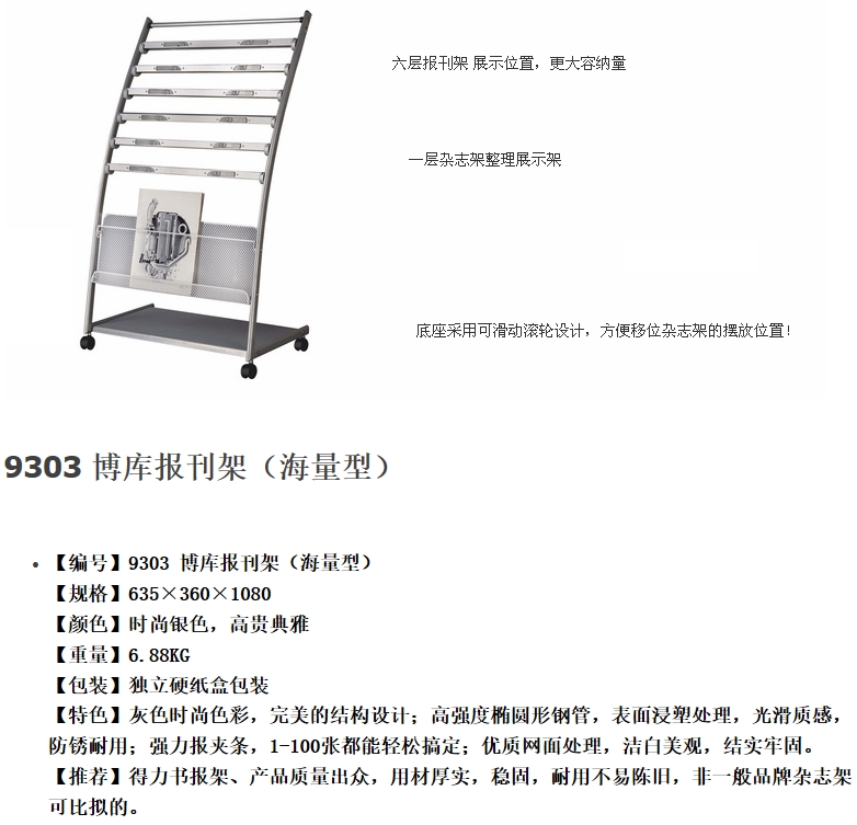 - 商品名稱:得力(deli)9303海量型報刊架(635*360*1080mm)