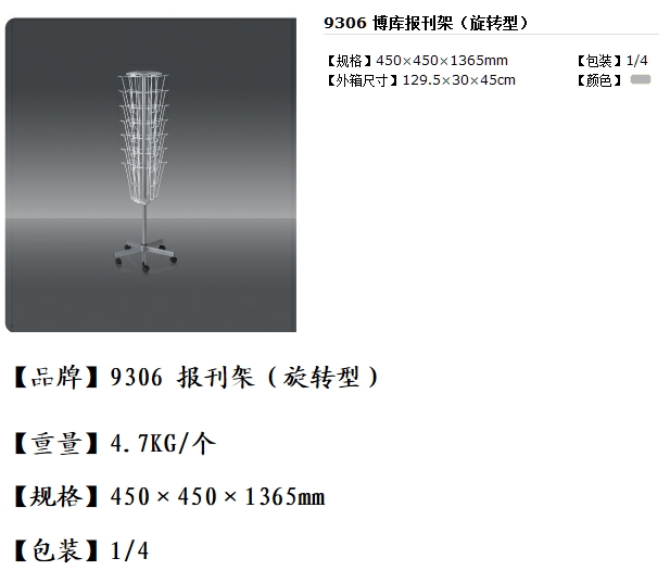 - 商品名稱:得力(deli)9306旋轉(zhuǎn)型雜志架(450*450*1365mm)