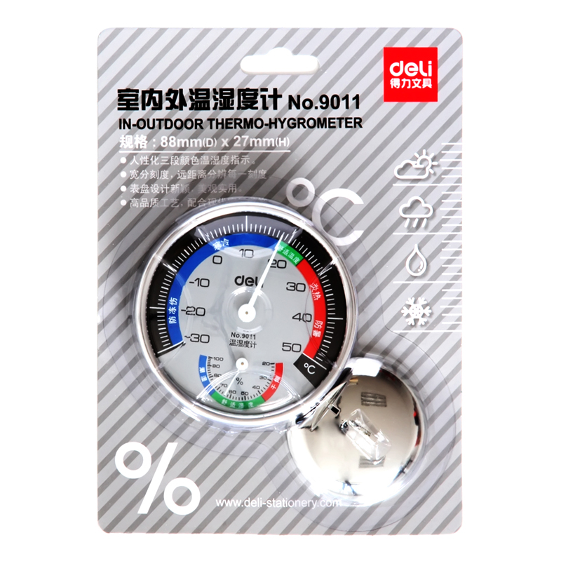 - 商品名稱:得力(deli)9011室內(nèi)外溫濕度計(規(guī)格:88*27mm)