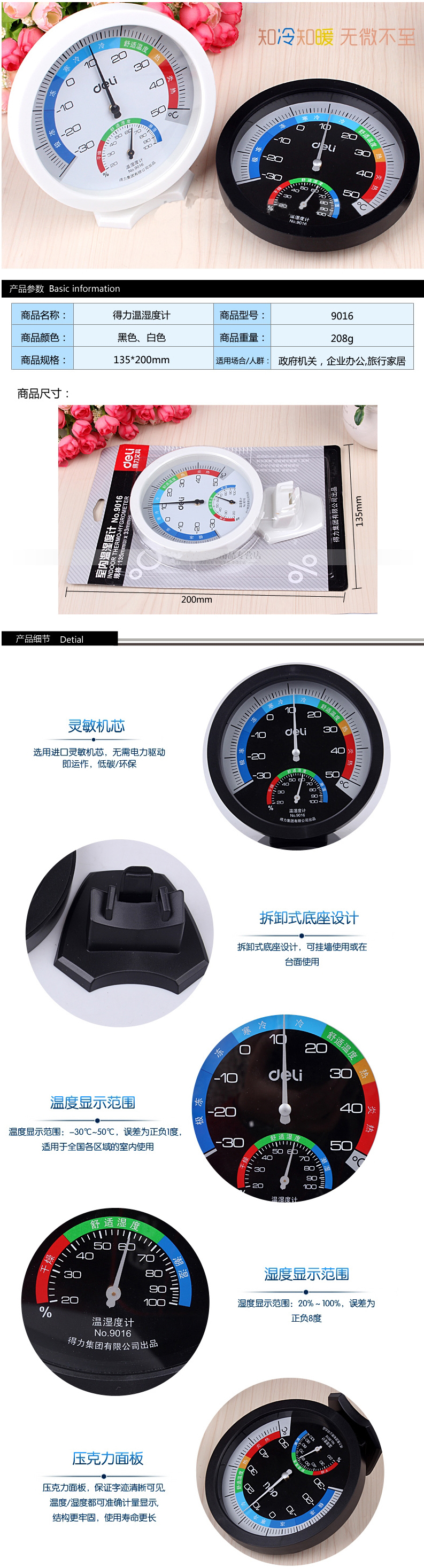 - 商品名稱:得力(deli)9016室內(nèi)外溫濕度計(規(guī)格:135*33mm)