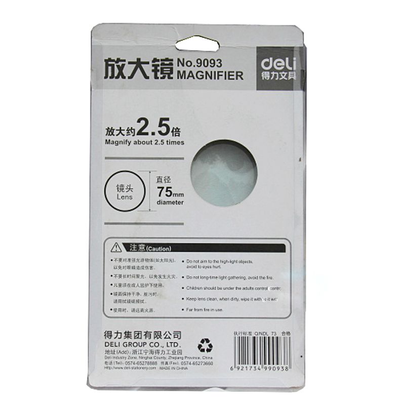 • 商品名稱:得力(deli)9093放大鏡(規(guī)格:鏡片直徑75mm;約放大2.5倍)