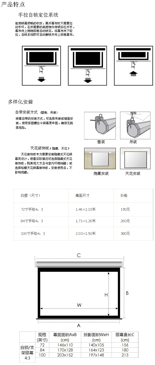 - 商品名稱:杰科麗72寸(146*110)4:3自鎖幕布