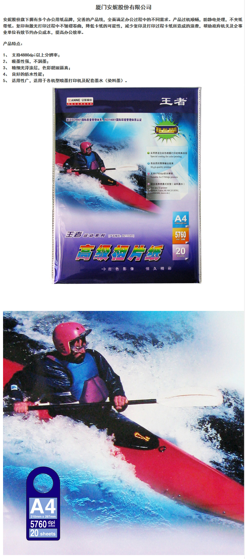 • 商品名稱:王者 A4 200g 高光相片紙(20張/包)