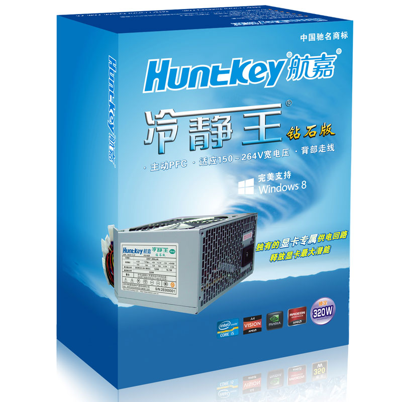 - 商品名稱:航嘉(Huntkey)冷靜王鉆石Win8版 電源(額定350W/主動PFC/雙管正激)