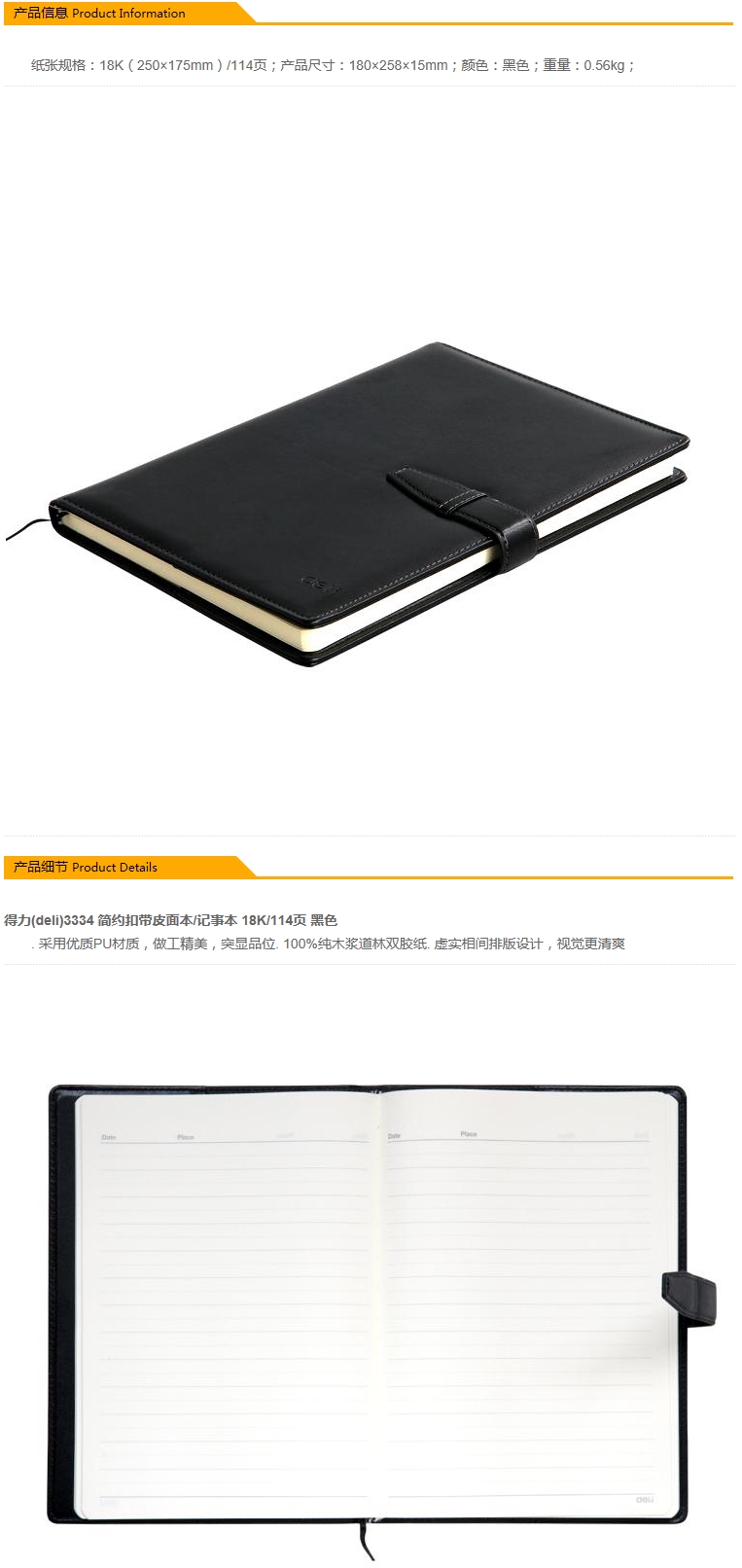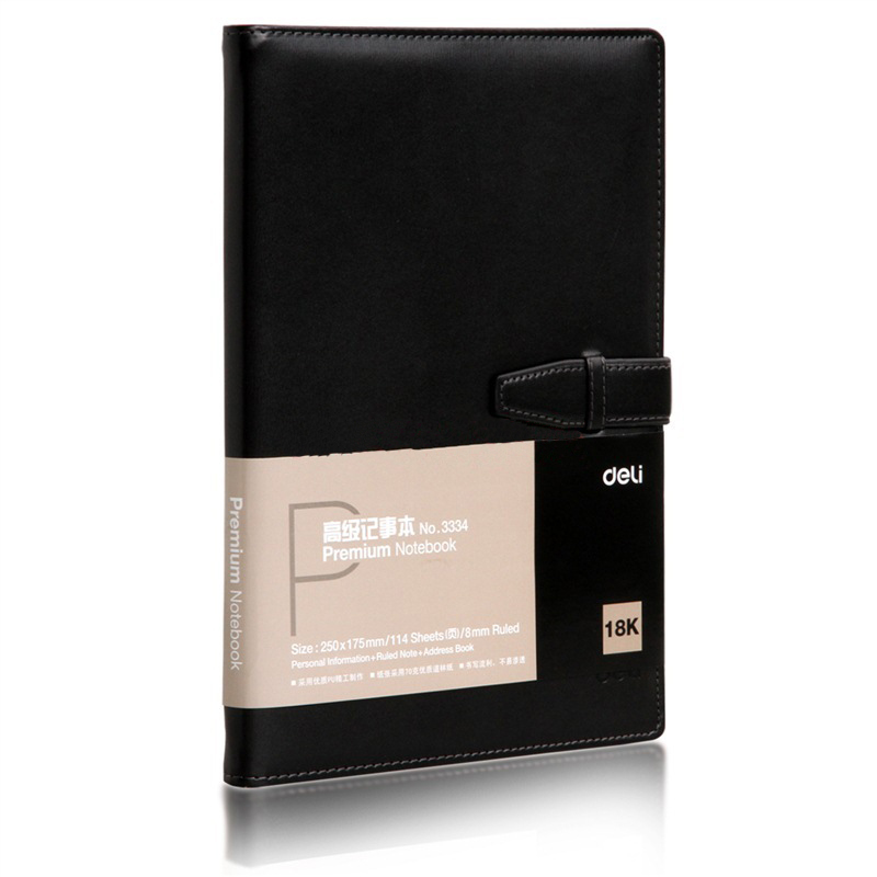 - 商品名稱:得力(deli) 3334 簡約扣帶皮面本/記事本(黑色,18K/114頁)