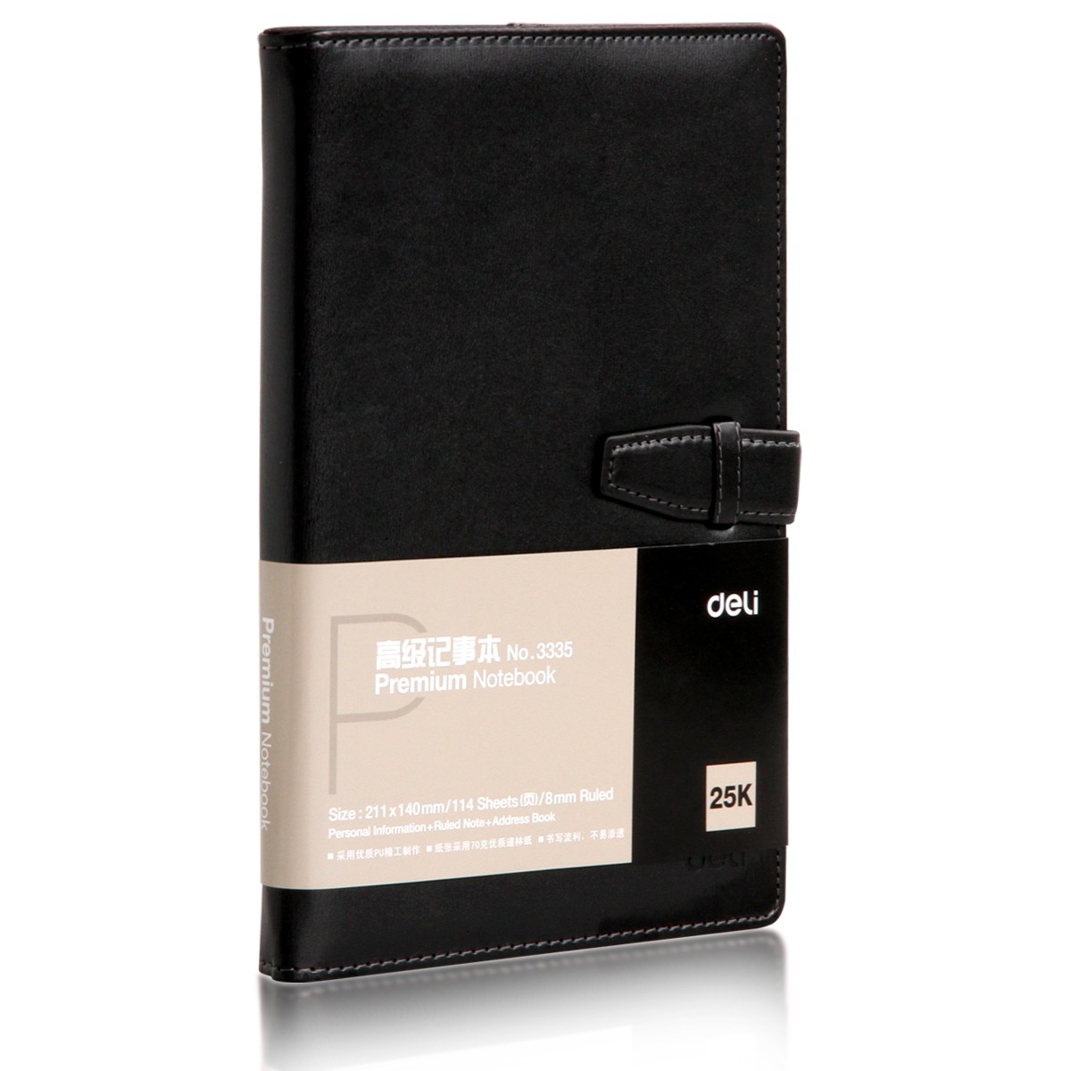 - 商品名稱:得力(deli) 3335 簡約扣帶皮面本/記事本(黑色,25K/114頁)