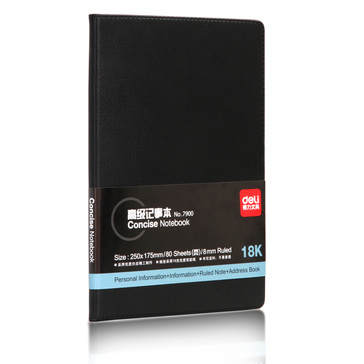 - 商品名稱:得力(deli) 7900 商務(wù)皮面本/記事本(黑色,18K/80張)