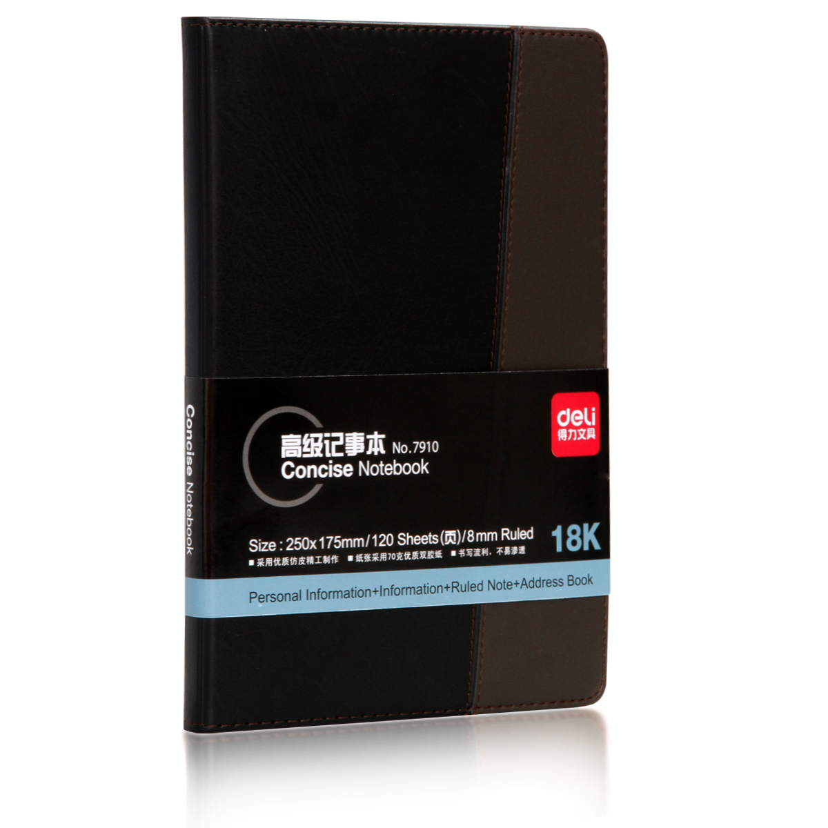 - 商品名稱:得力(deli) 7910 商務(wù)皮面本/記事本(黑色,18K/120張)