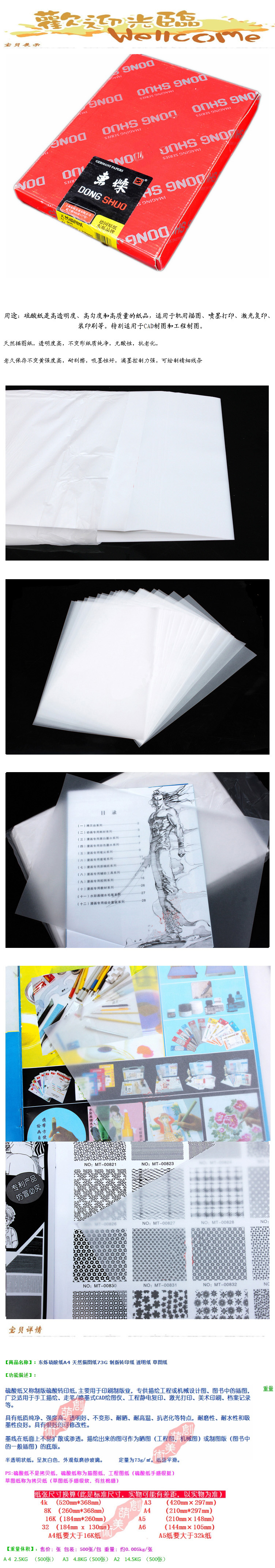 - 商品名稱:東爍 A3 73g 描圖紙(硫酸紙)(500張/盒)