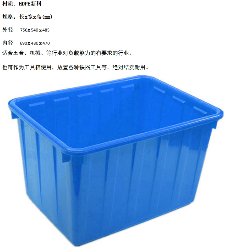 • 商品名稱:塑料水箱 160L(藍(lán)色,外:750*540*485mm)