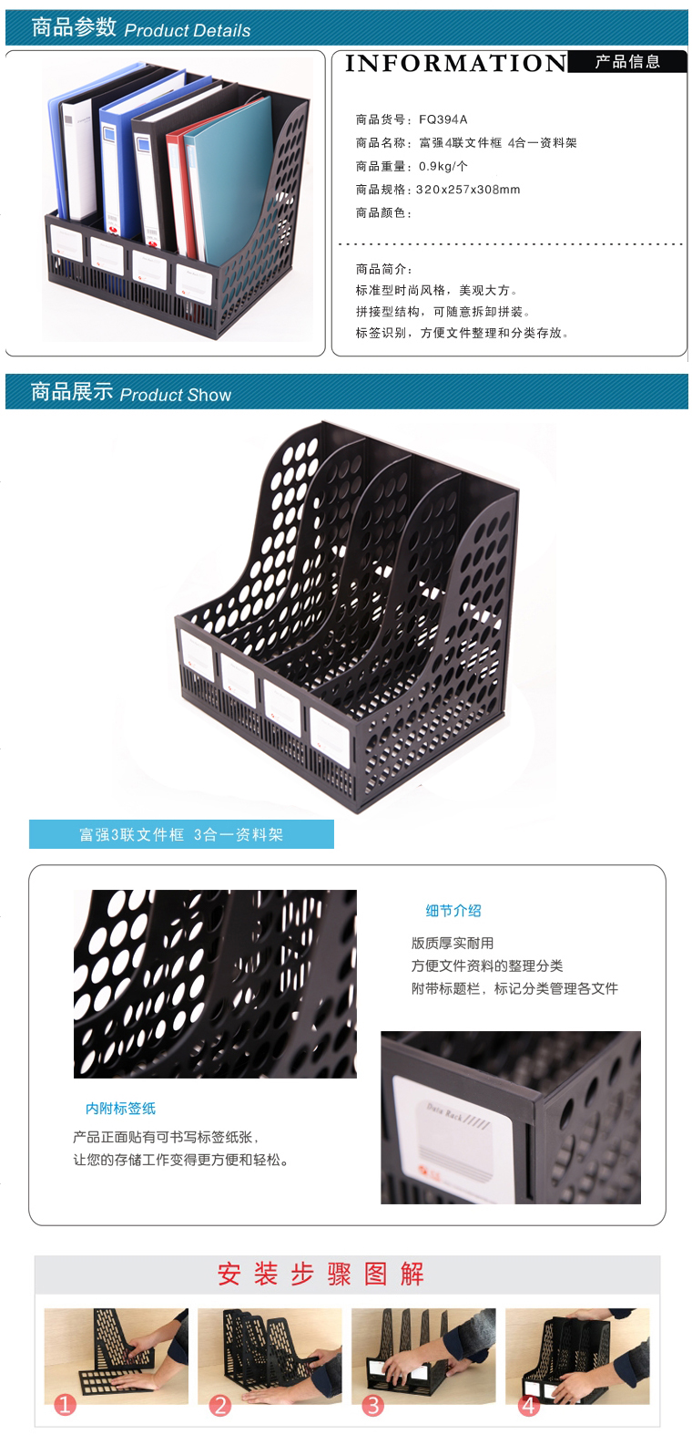 - 商品名稱:富強(qiáng) FQ394A 四欄文件欄 黑色(12只/箱)