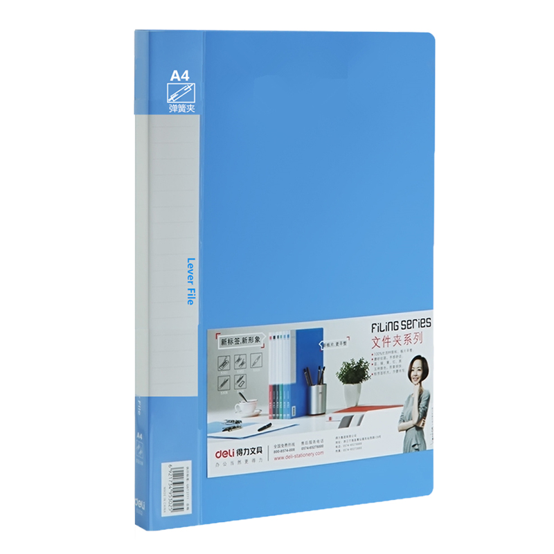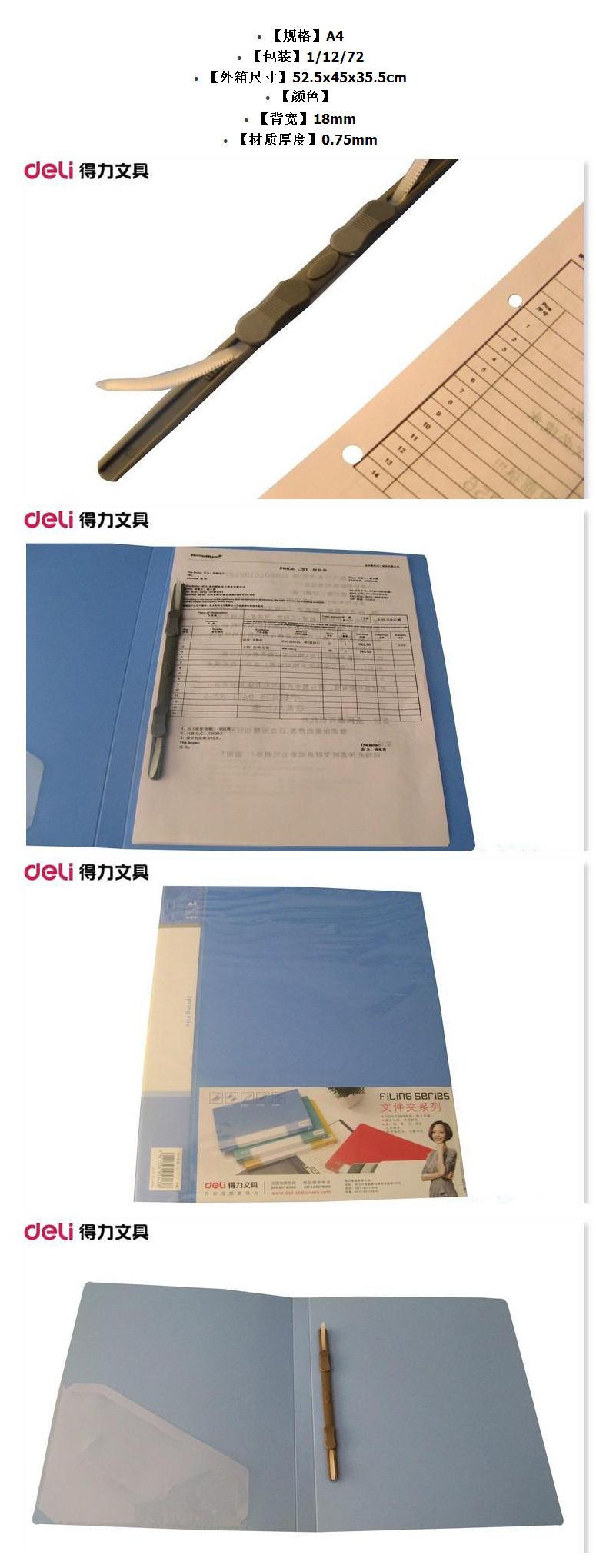 • 商品名稱:得力(deli) A4 5303 5343 彈簧夾+插袋加厚文件夾 藍色(12只/箱)
