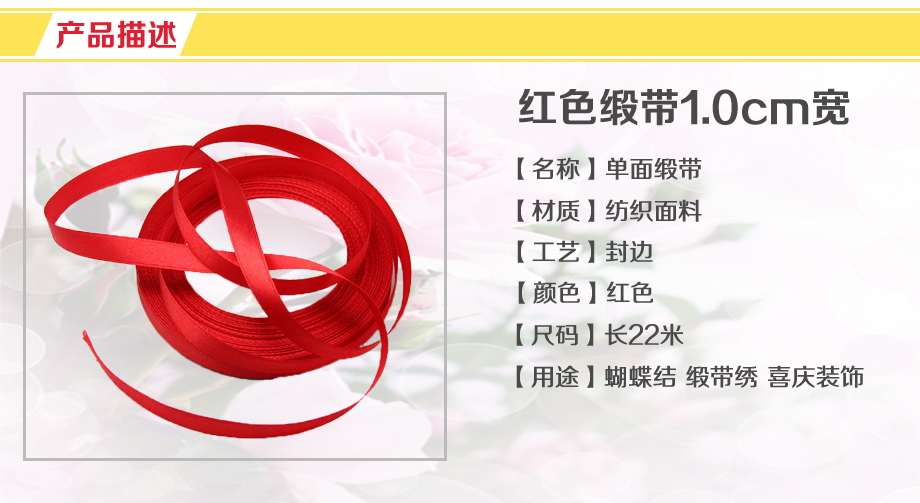 - 商品名稱(chēng):紅絲帶1.0*22m