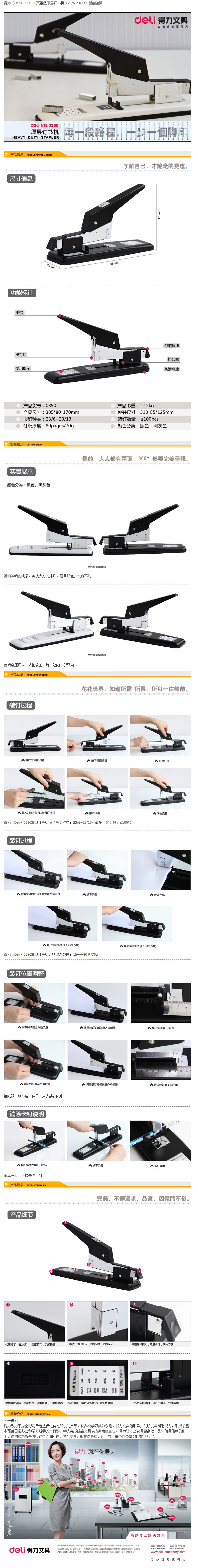 • 商品名稱:得力(deli)重型訂書機(jī) 0390(≤裝訂張數(shù)80張/70g紙)