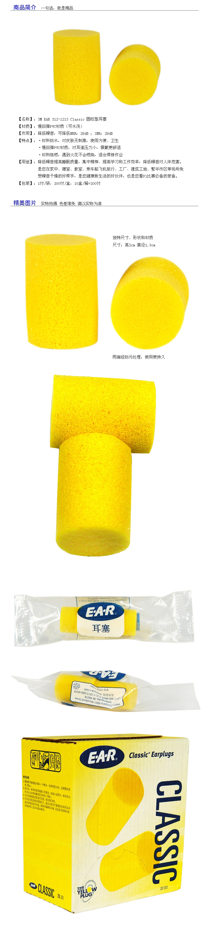 - 商品名稱(chēng):3M E·A·R?312-1213Classic/312-1201Classic圓柱型耳塞 (200副/盒)