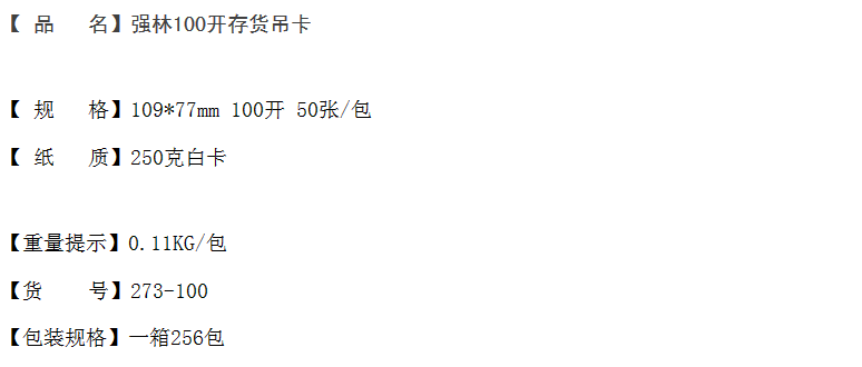 • 商品名稱:強林存貨吊卡 100張/刀 273-100K