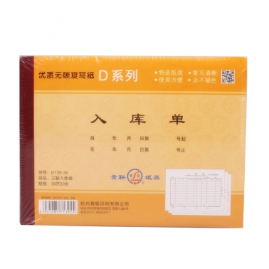 青聯(lián)三聯(lián)無碳入庫單 139-36 (36開,20份/本,10本/封)