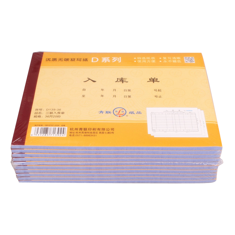 • 商品名稱:青聯(lián)三聯(lián)無碳入庫單 139-36 (36開,20份/本,10本/封)